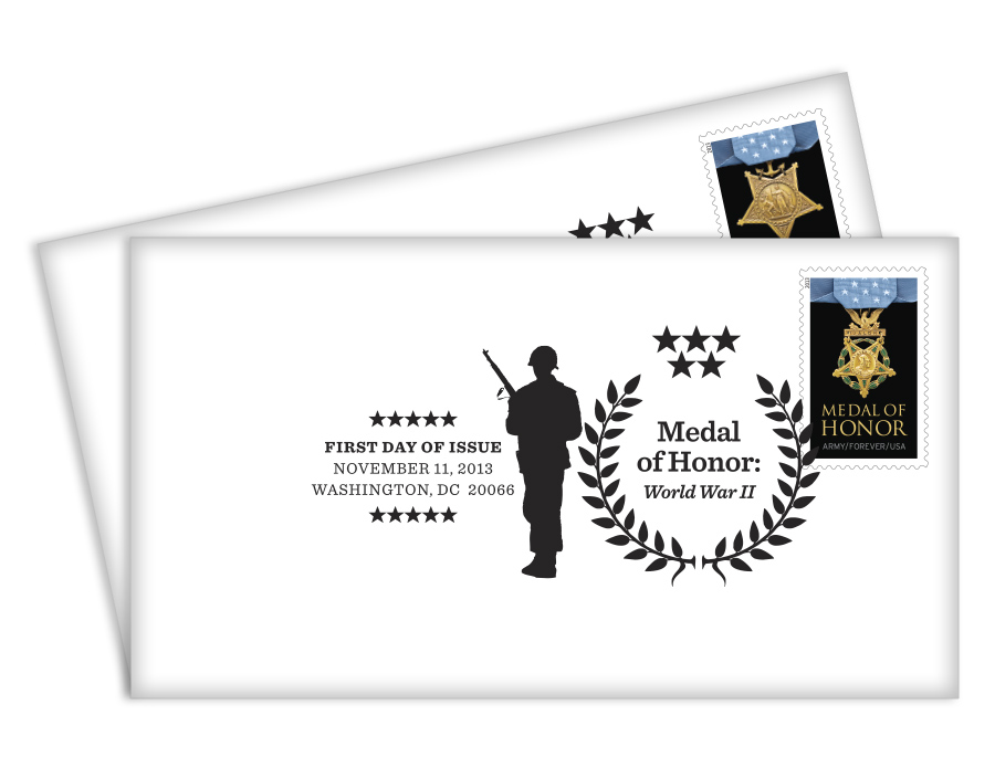 “Our challenge as a nation is to never forget the sacrifices all of these individuals made on our behalf,” said Postmaster General Patrick Donahoe in dedicating the stamps. “We hope these new Medal of Honor Forever stamps will provide everyone with one more way to preserve our veterans’ stories for future generations. I urge you to use these stamps and mail them around the nation and the world. Save them for your children and grandchildren. Let them serve as small reminders of the giant sacrifices made by the heroes of World War II.”