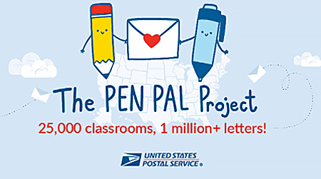 The USPS Pen Pal Project will provide 25,000 classrooms across the country the opportunity to partner with matched classes to write 1 million letters with the goal of building friendships and understanding diverse perspectives.